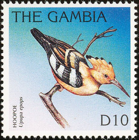 Visibility: public Image owner: none postage 10/22/1996 10d multi issue=Birds 1996 dt=birds (1996 Gambia) d=hoopoe Upupa epops (1996 Gambia) unwmk perf=14 Crops No visible images cropped from this one. Measurements Resolution is unknown. Source Source name: Colnect File URL: http://i.colnect.net/b/1462/534/Eurasian-Hoopoe-Upupa-epops.jpg Uploaded September 11, 2014, 7:03 pm by Stan Shebs |