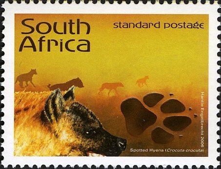 Visibility: public Image owner: none postage 9/15/2006 Standard Postage multi dt=animals & their tracks unwmk Crops No visible images cropped from this one. Measurements Resolution is unknown. Source Source name: Colnect File URL: http://i.colnect.net/b/1608/377/Spotted-Hyena-Crocuta-crocuta.jpg Uploaded September 11, 2014, 8:31 pm by Stan Shebs |