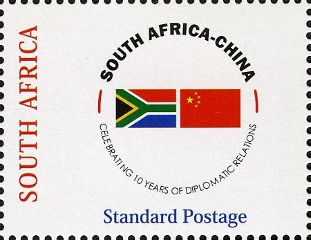 Visibility: public Image owner: none postage 4/24/2008 Standard Postage multi issue=10 Years of Diplomatic Relations South Africa and China unwmk Crops No visible images cropped from this one. Measurements Resolution is unknown. Source Source name: Colnect File URL: http://i.colnect.net/b/1389/415/10th-anniversary-of-the-establishment-of-diplomatic-relation.jpg Uploaded September 11, 2014, 8:32 pm by Stan Shebs |