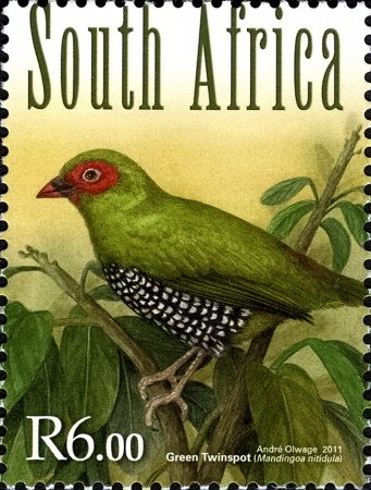 Visibility: public Image owner: none postage 6/15/2011 6.00r dt=South African forest birds d=Green Twinspot unwmk Crops No visible images cropped from this one. Measurements Resolution is unknown. Source Source name: Colnect File URL: http://i.colnect.net/b/1617/067/Green-backed-Twinspot-Mandingoa-nitidula-.jpg Uploaded September 11, 2014, 8:35 pm by Stan Shebs |