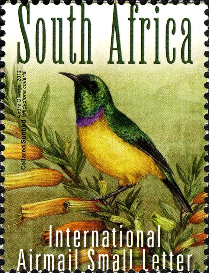 Visibility: public Image owner: none postage 8/14/2012 International Airmail Small Letter multi dt=sunbirds (2012) d=collared sunbird (2012) unwmk Crops No visible images cropped from this one. Measurements Resolution is unknown. Source Source name: Colnect File URL: http://i.colnect.net/b/1389/742/Collared-Sunbird-Hedydipna-collaris.jpg Uploaded September 11, 2014, 8:37 pm by Stan Shebs |