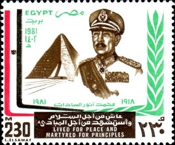 Visibility: public Image owner: none postage 11/14/1981 230m multi issue=President Sadat memorial unwmk perf=11x11.25 Crops No visible images cropped from this one. Measurements Resolution is unknown. Source Source name: Colnect File URL: http://i.colnect.net/b/1066/718/Death-of-Pres-Anwar-Sadat.jpg Uploaded September 11, 2014, 8:51 pm by Stan Shebs |