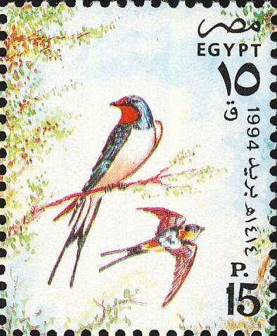 Visibility: public Image owner: none postage 3/3/1994 15p multi dt=birds (1994 Egypt) d=Hirundo rustica (1994) unwmk perf=12.75x13.25 Crops No visible images cropped from this one. Measurements Resolution is unknown. Source Source name: Colnect File URL: http://i.colnect.net/b/1646/553/Barn-Swallow-Hirundo-rustica.jpg Uploaded September 11, 2014, 8:52 pm by Stan Shebs |