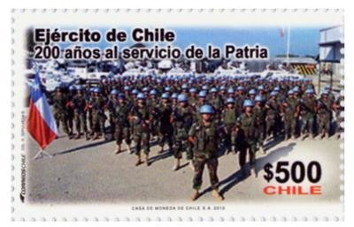 Visibility: public Image owner: none postage 12/2/2010 500p multi issue=Bicentenary of Chile Army serving Homeland unwmk perf=13.5 Crops No visible images cropped from this one. Measurements Resolution is unknown. Source Source name: Colnect File URL: http://i.colnect.net/b/652/399/Army-of-Chile.jpg Uploaded September 11, 2014, 9:10 pm by Stan Shebs |