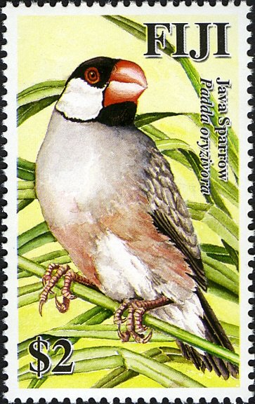 Visibility: public Image owner: none postage 5/22/2007 $2 multi dt=Invasive Species in Fiji d=Java sparrow (2007) unwmk Crops No visible images cropped from this one. Measurements Resolution is unknown. Source Source name: Colnect File URL: http://i.colnect.net/images/b/746/674/Java-Sparrow-Padda-oryzivora.jpg Uploaded September 11, 2014, 10:23 pm by Stan Shebs |