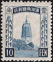 Visibility: public Image owner: none postage 7/1935 10f issue=1934b d=pagoda at Liaoyang (six chars) wmk=curved wavy lines (Manchukuo) Crops No visible images cropped from this one. Measurements Resolution is unknown. Source Source name: Colnect File URL: http://i.colnect.net/b/1483/242/White-Pagoda-Liaoyang.jpg Uploaded September 13, 2014, 1:18 pm by Stan Shebs |