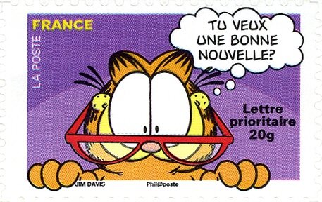 Visibility: public Image owner: none postage 9/18/2008 Lettre prioritaire 20g multi issue=Stamp booklet - Garfield d=Garfield wearing glasses unwmk Crops No visible images cropped from this one. Measurements Resolution is unknown. Source Source name: Colnect File URL: http://i.colnect.net/b/587/852/Garfield.jpg Uploaded September 13, 2014, 2:37 pm by Stan Shebs |