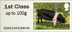 Visibility: public Image owner: none postage 4/24/2012 1st Class up to 100g multi issue=Post & Go 2012 dt=farm animals (2012) d=pigs - British Saddleback unwmk perf=17 Crops No visible images cropped from this one. Measurements Resolution is unknown. Source Source name: Colnect File URL: http://i.colnect.net/images/b/1452/150/British-Saddleback-Pig-Sus-scrofa-domestica.jpg Uploaded January 23, 2014, 5:49 pm by Stan Shebs |
