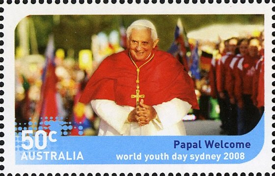 Visibility: public Image owner: none postage 7/19/2008 50c multi issue=World Youth Day 2008 b d=Papal Welcome unwmk perf=14.28 Crops No visible images cropped from this one. Measurements Resolution is unknown. Source Source name: Colnect File URL: http://i.colnect.net/b/472/696/Pope-At-Barangaroo.jpg Uploaded August 13, 2014, 12:16 am by Stan Shebs |