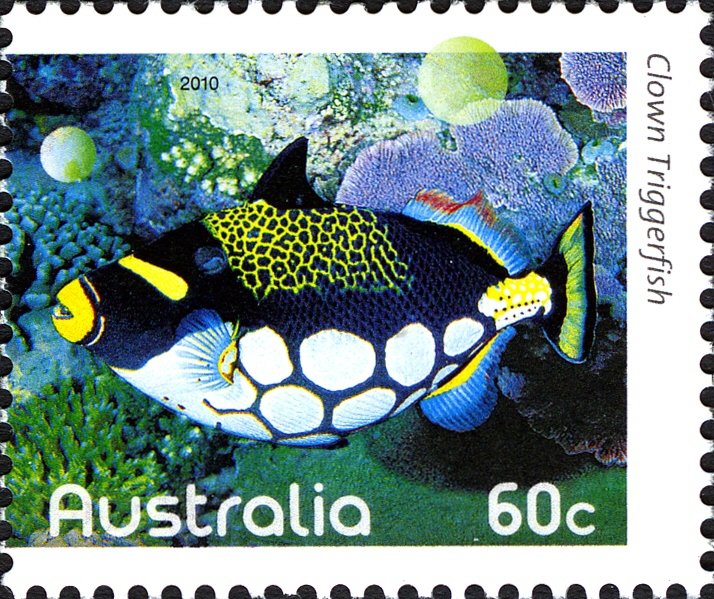 Visibility: public Image owner: none postage 6/21/2010 60c multi issue=Fishes of the Reef I dt=fishes (2010 Australia) d=clown triggerfish (2010) unwmk perf=14x14.5 Crops No visible images cropped from this one. Measurements Resolution is unknown. Source Source name: Colnect File URL: http://i.colnect.net/b/910/744/Clown-Triggerfish-Balistoides-conspicillum.jpg Uploaded September 13, 2014, 3:01 pm by Stan Shebs |