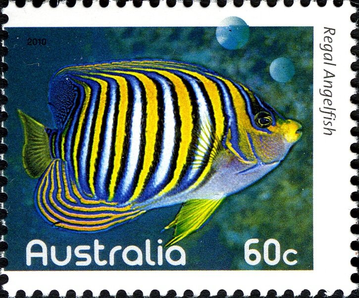Visibility: public Image owner: none postage 6/21/2010 60c multi issue=Fishes of the Reef I dt=fishes (2010 Australia) d=Regal Angelfish (2010) unwmk perf=14x14.5 Crops No visible images cropped from this one. Measurements Resolution is unknown. Source Source name: Colnect File URL: http://i.colnect.net/b/910/741/Regal-Angelfish-Pygoplites-diacanthus.jpg Uploaded September 13, 2014, 3:02 pm by Stan Shebs |