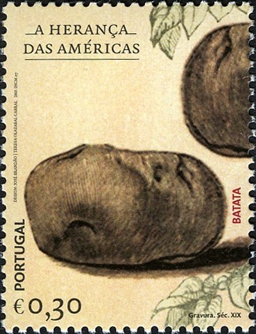 Visibility: public Image owner: none postage 9/25/2007 0,30€ multi issue=American Heritage d=Potato (2007) unwmk Crops No visible images cropped from this one. Measurements Resolution is unknown. Source Source name: Colnect File URL: http://i.colnect.net/images/b/579/454/American-Heritage---Potato.jpg Uploaded September 13, 2014, 3:31 pm by Stan Shebs |