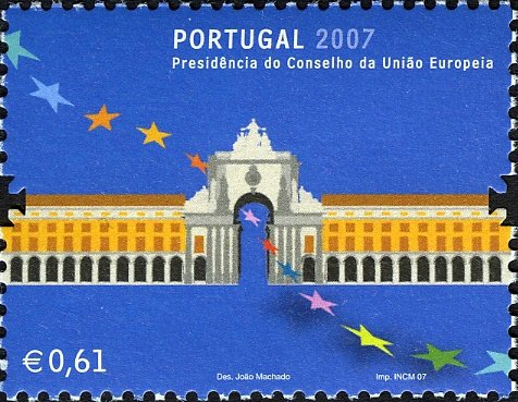 Visibility: public Image owner: none postage 7/1/2007 0.61€ multi issue=Portuguese Presidency of the European Union unwmk Crops No visible images cropped from this one. Measurements Resolution is unknown. Source Source name: Colnect File URL: http://i.colnect.net/images/b/579/435/Portuguese-Presidency-of-the-European-Union.jpg Uploaded September 13, 2014, 3:33 pm by Stan Shebs |