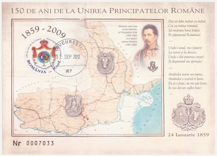Visibility: public Image owner: none Crops No visible images cropped from this one. Measurements Resolution is unknown. Source Source name: Colnect File URL: http://i.colnect.net/b/1351/929/150-Years-of-Unification-of-Wallachia-Moldavia.jpg Uploaded September 15, 2014, 1:38 pm by Stan Shebs |