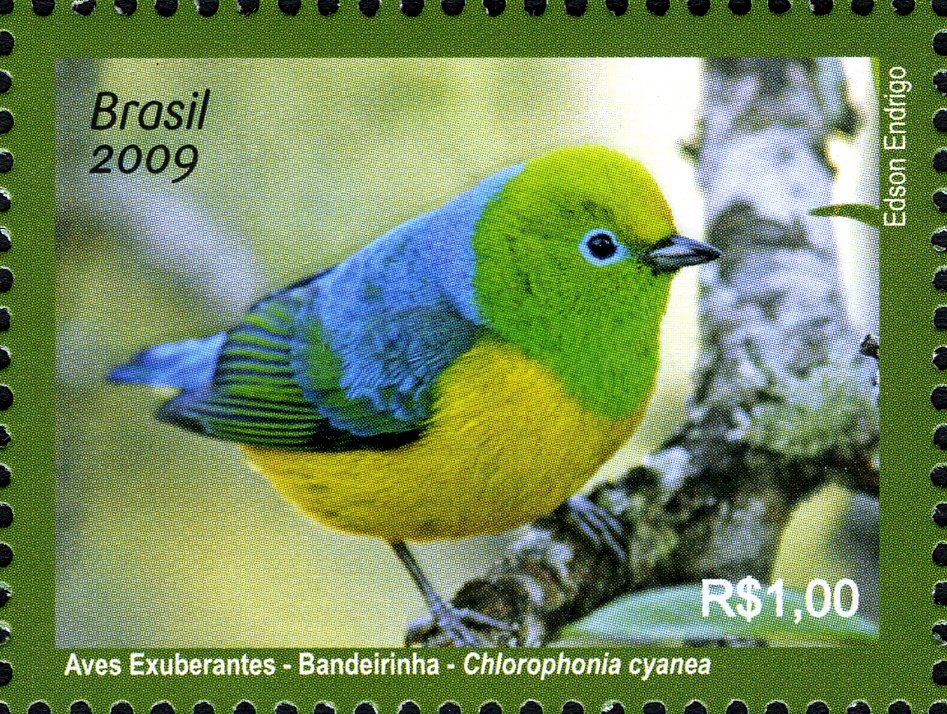 Visibility: public Image owner: none postage 10/2/2009 1.00r multi issue=Exuberant Brazilian Birds dt=Exuberant Brazilian birds d=Chlorophonia cyanea - Blue-naped Chlorophonia unwmk perf=11.5x12 Crops No visible images cropped from this one. Measurements Resolution is unknown. Source Source name: Colnect File URL: http://i.colnect.net/b/450/160/Blue-naped-Chlorophonia-Chlorophonia-cyanea.jpg Uploaded September 15, 2014, 3:50 pm by Stan Shebs |