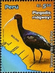 Visibility: public Image owner: none postage 5/2/2006 5.50s multi dt=fauna of Lake Titicaca d=Plegadis ridgwayi unwmk perf=14 Crops No visible images cropped from this one. Measurements Resolution is unknown. Source Source name: Colnect File URL: http://i.colnect.net/b/1584/579/Puna-Ibis-Plegadis-ridgwayi.jpg Uploaded September 15, 2014, 5:14 pm by Stan Shebs |