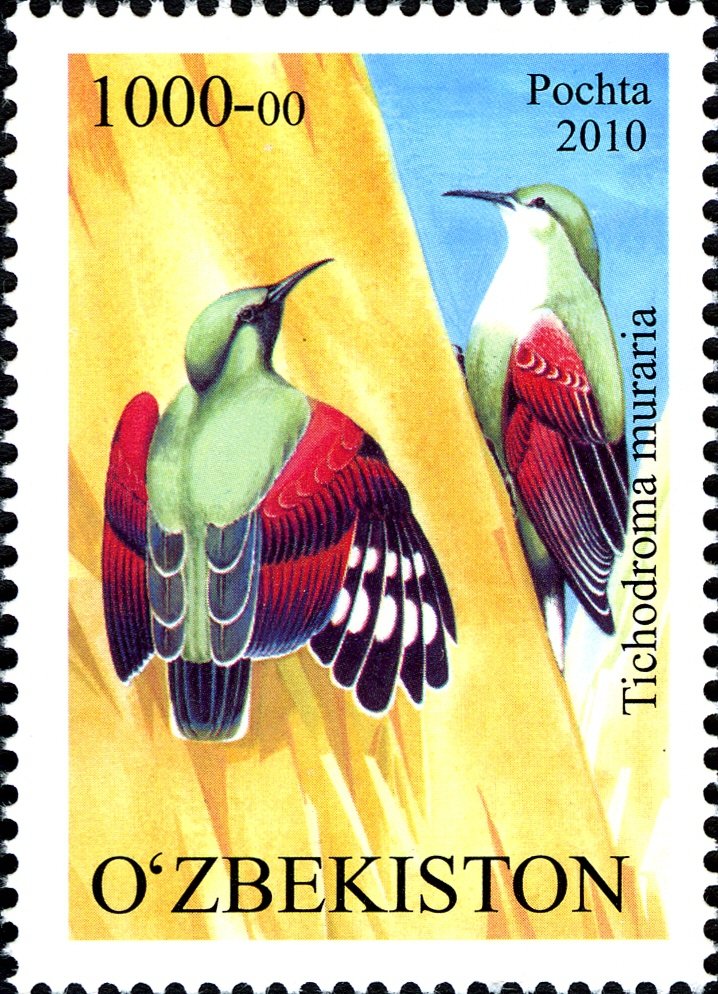 Visibility: public Image owner: none postage 4/15/2010 1000.00s multi issue=Rare Birds of Uzbekistan d=Tichodroma muraria (2010) unwmk Crops No visible images cropped from this one. Measurements Resolution is unknown. Source Source name: Colnect File URL: http://i.colnect.net/b/854/421/Wallcreeper-Tichodroma-muraria.jpg Uploaded September 15, 2014, 7:24 pm by Stan Shebs |