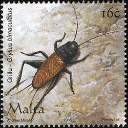 Visibility: public Image owner: none postage 4/20/2005 16c multi dt=insects (2005) d=Two-spotted Field Cricket Gryllus bimaculatus wmk=Maltese cross mult Crops No visible images cropped from this one. Measurements Resolution is unknown. Source Source name: Colnect File URL: http://i.colnect.net/b/657/595/Two-spotted-Cricket-Gryllus-bimaculatus.jpg Uploaded September 15, 2014, 8:01 pm by Stan Shebs |
