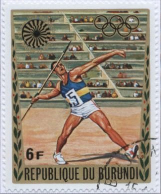 Visibility: public Image owner: none postage 5/19/1972 6fr multi issue=Olympics 1972 unwmk Crops No visible images cropped from this one. Measurements Resolution is unknown. Source Source name: Colnect File URL: http://i.colnect.net/images/b/1323/914/Javelin.jpg Uploaded September 15, 2014, 9:33 pm by Stan Shebs |