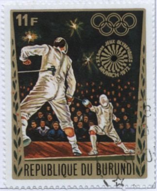 Visibility: public Image owner: none postage 5/19/1972 11fr multi issue=Olympics 1972 unwmk Crops No visible images cropped from this one. Measurements Resolution is unknown. Source Source name: Colnect File URL: http://i.colnect.net/images/b/1323/915/Fencing.jpg Uploaded September 15, 2014, 9:33 pm by Stan Shebs |