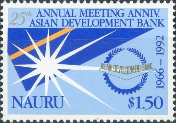 Visibility: public Image owner: none postage 5/4/1992 $1.50 multi issue=25th Annual Meeting of Asian Development Bank unwmk Crops No visible images cropped from this one. Measurements Resolution is unknown. Source Source name: Colnect File URL: http://i.colnect.net/b/1209/443/Flag-of-Nauru-Logo-of-the-Bank.jpg Uploaded September 15, 2014, 10:18 pm by Stan Shebs |