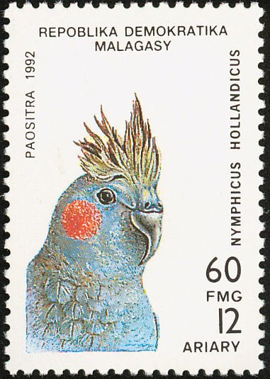 Visibility: public Image owner: none postage 2/24/1993 60fr multi issue=Parrots 1993 dt=parrots (1993) d=Nymphicus hollandicus (1993 Madagascar) unwmk Crops No visible images cropped from this one. Measurements Resolution is unknown. Source Source name: Colnect File URL: http://i.colnect.net/b/1457/971/Cockatiel-Nymphicus-hollandicus.jpg Uploaded September 15, 2014, 10:48 pm by Stan Shebs |