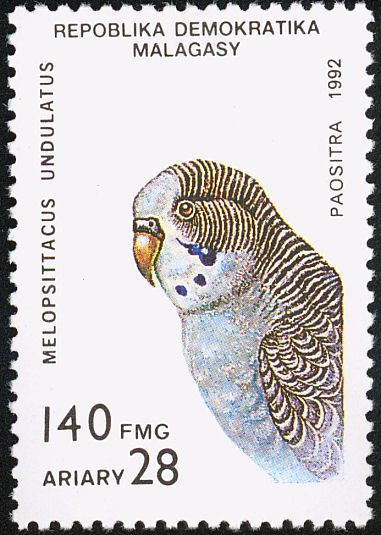 Visibility: public Image owner: none postage 2/24/1993 140fr multi issue=Parrots 1993 dt=parrots (1993) d=Melopsittacus undulatus (1993 Madagascar) unwmk Crops No visible images cropped from this one. Measurements Resolution is unknown. Source Source name: Colnect File URL: http://i.colnect.net/b/1458/221/Budgerigar-Melopsittacus-undulatus.jpg Uploaded September 15, 2014, 10:48 pm by Stan Shebs |