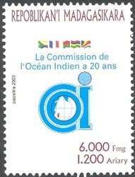 Visibility: public Image owner: none postage 12/4/2003 6000fr multi issue=20th Anniversary of the Indian Ocean Commission unwmk Crops No visible images cropped from this one. Measurements Resolution is unknown. Source Source name: Colnect File URL: http://i.colnect.net/b/1458/371/Indian-Ocean-Commission.jpg Uploaded September 15, 2014, 11:28 pm by Stan Shebs |