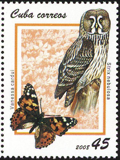 Visibility: public Image owner: none postage 6/1/2008 45c multi issue=EFIRO 2008 d=Strix nebulosa & Vanessa cardui unwmk perf=13 Crops No visible images cropped from this one. Measurements Resolution is unknown. Source Source name: Colnect File URL: http://i.colnect.net/b/872/208/Great-Grey-Owl Strix-nebulosa-Painted-Lady-Vanessa-cardu.jpg Uploaded September 16, 2014, 1:35 pm by Stan Shebs |