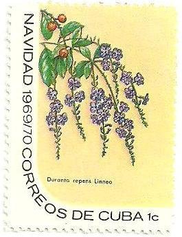 Visibility: public Image owner: none postage 12/1/1969 1c multi issue=Christmas 1969 dt=flowers (1969 Cuba) d=Duranta repens (1969) unwmk perf=12.5 Crops No visible images cropped from this one. Measurements Resolution is unknown. Source Source name: Colnect File URL: http://i.colnect.net/b/1726/377/Duranta-repens.jpg Uploaded September 16, 2014, 1:38 pm by Stan Shebs |
