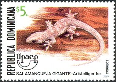 Visibility: public Image owner: none postage 1/19/2004 5.00p multi issue=America UPAEP 2004 d=Aristelliger lar wmk=crosses & circles Crops No visible images cropped from this one. Measurements Resolution is unknown. Source Source name: Colnect File URL: http://i.colnect.net/b/1610/660/Hispaniolan-Giant-Gecko-Aristelliger-lar.jpg Uploaded September 16, 2014, 1:54 pm by Stan Shebs |