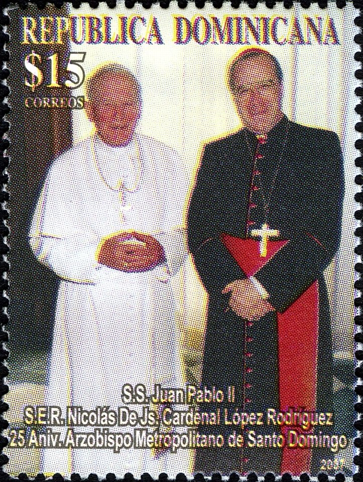 Visibility: public Image owner: none postage 5/25/2007 $15 multi issue=25th Anniversary of Selection of Nicolas de Jesus Cardinal Lopez Rodriguez as Archbishop of Santo Do wmk=crosses & circles Crops No visible images cropped from this one. Measurements Resolution is unknown. Source Source name: Colnect File URL: http://i.colnect.net/b/1610/688/Religions---beliefs-Famous-religious-people.jpg Uploaded September 16, 2014, 1:54 pm by Stan Shebs |