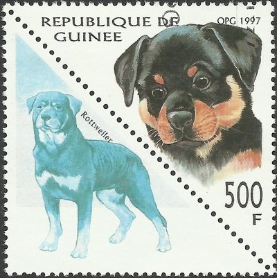 Visibility: public Image owner: none postage 11/10/1997 500fr multi dt=dogs (1997 Guinea) d=Rottweiler (1997) unwmk perf=13.75x14 Crops No visible images cropped from this one. Measurements Resolution is unknown. Source Source name: Colnect File URL: http://i.colnect.net/b/1261/712/Rottweiler-Canis-lupus-familiaris.jpg Uploaded September 16, 2014, 2:06 pm by Stan Shebs |