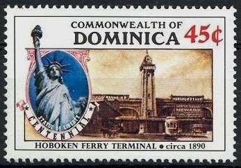 Visibility: public Image owner: none postage 3/27/1986 45c multi issue=100th Anniversary of Statue of Liberty d=Hoboken Ferry Terminal c 1890 wmk=mult crown & script CA perf=14 Crops No visible images cropped from this one. Measurements Resolution is unknown. Source Source name: Colnect File URL: http://i.colnect.net/b/1101/192/Hoboken-Ferry-Terminal-c-1890.jpg Uploaded September 16, 2014, 2:19 pm by Stan Shebs |