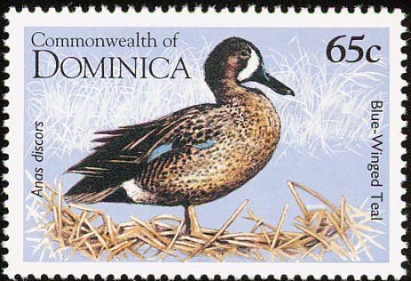 Visibility: public Image owner: none postage 4/15/1995 65c multi dt=Water Birds (1995 Dominica) d=Anas discors (1995 Dominica) wmk=mult crown & script CA perf=14.25 Crops No visible images cropped from this one. Measurements Resolution is unknown. Source Source name: Colnect File URL: http://i.colnect.net/b/1748/084/Blue-winged-Teal Anas-discors.jpg Uploaded September 16, 2014, 2:22 pm by Stan Shebs |