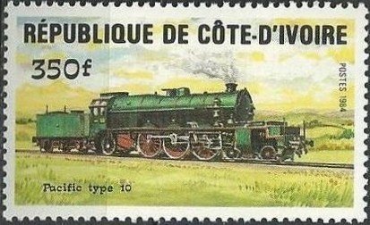 Visibility: public Image owner: none postage 8/25/1984 350fr multi dt=locomotives (1984 Ivory Coast) d=Pacific type 10 unwmk Crops No visible images cropped from this one. Measurements Resolution is unknown. Source Source name: Colnect File URL: http://i.colnect.net/images/b/1738/662/Pacific-type-10.jpg Uploaded September 16, 2014, 3:02 pm by Stan Shebs |