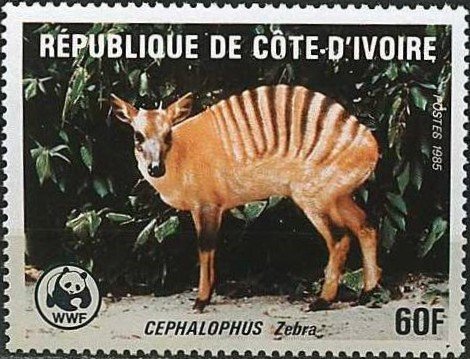 Visibility: public Image owner: none postage 11/30/1985 60fr multi dt=banded duikers d=Cephalophus zebra (1985) unwmk Crops No visible images cropped from this one. Measurements Resolution is unknown. Source Source name: Colnect File URL: http://i.colnect.net/b/1738/691/Zebra-Duiker-Cephalophus-zebra.jpg Uploaded September 16, 2014, 3:02 pm by Stan Shebs |