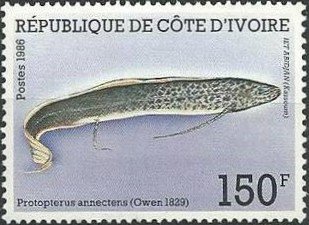Visibility: public Image owner: none postage 7/5/1986 150fr multi issue=Fish 1986 d=Protopterus annectens (1986) unwmk Crops No visible images cropped from this one. Measurements Resolution is unknown. Source Source name: Colnect File URL: http://i.colnect.net/b/1738/701/West-African-Lungfish-Protopterus-annectens.jpg Uploaded September 16, 2014, 3:03 pm by Stan Shebs |