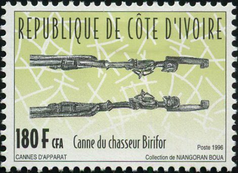 Visibility: public Image owner: none postage 9/20/1996 180fr multi issue=Ceremonial Sticks unwmk Crops No visible images cropped from this one. Measurements Resolution is unknown. Source Source name: Colnect File URL: http://i.colnect.net/b/1055/810/Ceremonial-cane---Cane-hunter-Birifor.jpg Uploaded September 16, 2014, 3:08 pm by Stan Shebs |