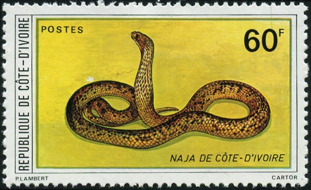 Visibility: public Image owner: none postage 7/12/1980 60fr multi d=Naja sp. unwmk Crops No visible images cropped from this one. Measurements Resolution is unknown. Source Source name: Colnect File URL: http://i.colnect.net/b/1634/502/Cobra-Naja-sp.jpg Uploaded September 16, 2014, 3:13 pm by Stan Shebs |