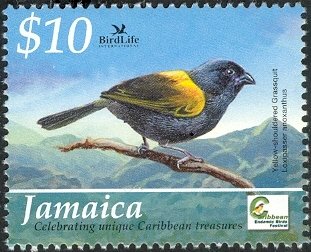 Visibility: public Image owner: none postage 5/17/2004 $10 multi issue=Caribbean Bird Festival dt=birds (2004 Jamaica) d=Yellow-shouldered Grassquit Crops No visible images cropped from this one. Measurements Resolution is unknown. Source Source name: Colnect File URL: http://i.colnect.net/b/1615/304/Yellow-shouldered-Grassquit-Loxipasser-anoxanthus-.jpg Uploaded September 16, 2014, 4:48 pm by Stan Shebs |