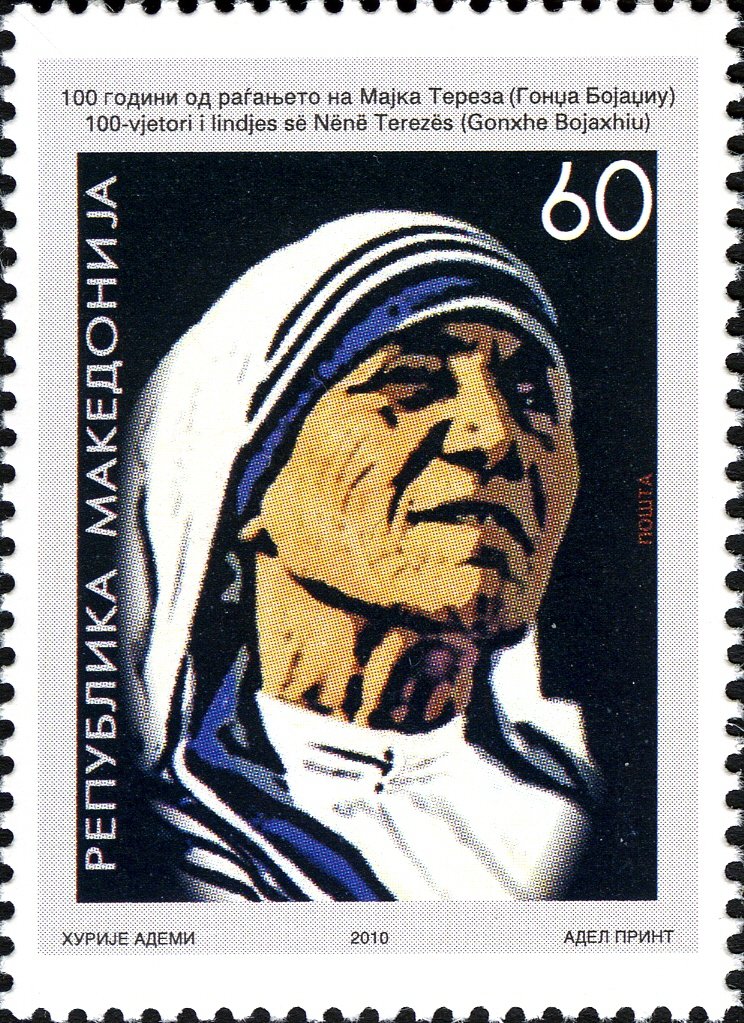 Visibility: public Image owner: none postage 8/26/2010 60(d) multi issue=Mother Teresa 100th d=Mother Teresa (2010) unwmk perf=13 Crops No visible images cropped from this one. Measurements Resolution is unknown. Source Source name: Colnect File URL: http://i.colnect.net/b/873/040/Mother-Teresa-1910-1997-Albanian-Indian-nun-humanitarian.jpg Uploaded September 16, 2014, 5:03 pm by Stan Shebs |