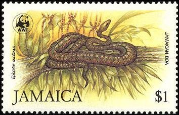 Visibility: public Image owner: none postage 10/22/1984 $1 multi dt=Jamaican Boas d=Jamaican Boa Epicrates subflavus wmk=Multiple "J" & Pineapple Crops No visible images cropped from this one. Measurements Resolution is unknown. Source Source name: Colnect File URL: http://i.colnect.net/b/1700/674/Jamaican-Boa-Epicrates-subflavus.jpg Uploaded September 16, 2014, 5:48 pm by Stan Shebs |
