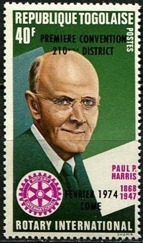 Visibility: public Image owner: none postage 2/21/1974 40fr multi d=Paul Harris (1972) ovpt=PREMIERE CONVENTION... oc=blk on=10/7/1972-40fr unwmk perf=14 Crops No visible images cropped from this one. Measurements Resolution is unknown. Source Source name: Colnect File URL: http://i.colnect.net/b/1650/244/Rotary-Convention.jpg Uploaded September 16, 2014, 6:05 pm by Stan Shebs |