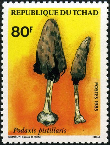Visibility: public Image owner: none postage 5/15/1985 80fr multi dt=Fungi (1985 Chad) d=Podaxis pistillaris (1985) unwmk Crops No visible images cropped from this one. Measurements Resolution is unknown. Source Source name: Colnect File URL: http://i.colnect.net/b/894/267/Podaxis-pistillaris.jpg Uploaded September 16, 2014, 6:11 pm by Stan Shebs |