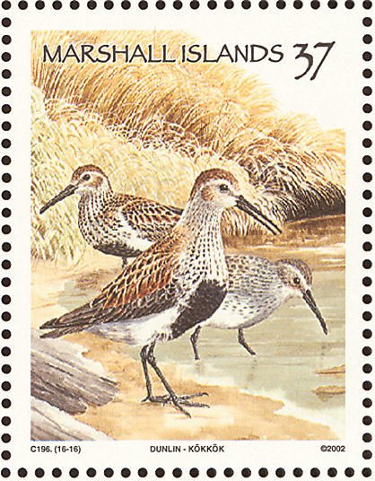 Visibility: public Image owner: none postage 5/29/2002 37c multi issue=Birds 2002 dt=birds (2002 Marshall Islands) d=Calidris alpina (2002) unwmk perf=13.5 Crops No visible images cropped from this one. Measurements Resolution is unknown. Source Source name: Colnect File URL: http://i.colnect.net/b/1599/568/Dunlin-Calidris-alpina.jpg Uploaded September 16, 2014, 6:15 pm by Stan Shebs |