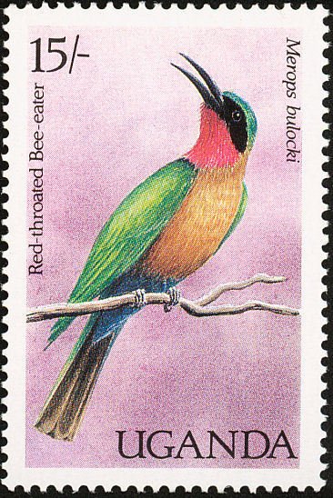 Visibility: public Image owner: none postage 10/19/1987 15sh multi dt=birds of Uganda (1987) d=Merops bulocki unwmk perf=14.25 Crops No visible images cropped from this one. Measurements Resolution is unknown. Source Source name: Colnect File URL: http://i.colnect.net/b/1712/378/Red-throated-Bee-eater-Meropiscus-bullocki.jpg Uploaded September 16, 2014, 6:24 pm by Stan Shebs |
