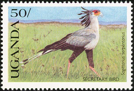 Visibility: public Image owner: none postage 9/3/1990 50sh multi dt=birds of Uganda (1990) d=Sagittarius serpentarius (1990) unwmk perf=14.25 Crops No visible images cropped from this one. Measurements Resolution is unknown. Source Source name: Colnect File URL: http://i.colnect.net/b/1715/769/Secretarybird-Sagittarius-serpentarius.jpg Uploaded September 16, 2014, 6:37 pm by Stan Shebs |