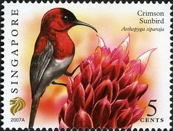 Visibility: public Image owner: none postage 6/6/2007 5c multi issue=2007 dt=flora & fauna (2007) d=Crimson Sunbird unwmk Crops No visible images cropped from this one. Measurements Resolution is unknown. Source Source name: Colnect File URL: http://i.colnect.net/b/614/041/Crimson-Sunbird-Aethopyga-siparaja.jpg Uploaded September 16, 2014, 6:53 pm by Stan Shebs |