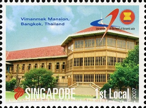 Visibility: public Image owner: none postage 8/8/2007 1st Local multi issue=ASEAN Joint Issue d=Vimanmek Mansion, Bangkok, Thailand unwmk perf=13.5 Crops No visible images cropped from this one. Measurements Resolution is unknown. Source Source name: Colnect File URL: http://i.colnect.net/b/1609/957/Vimanmek-Mansion-Bangkok-Thailand.jpg Uploaded September 16, 2014, 6:54 pm by Stan Shebs |